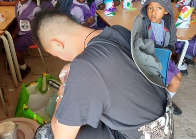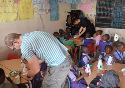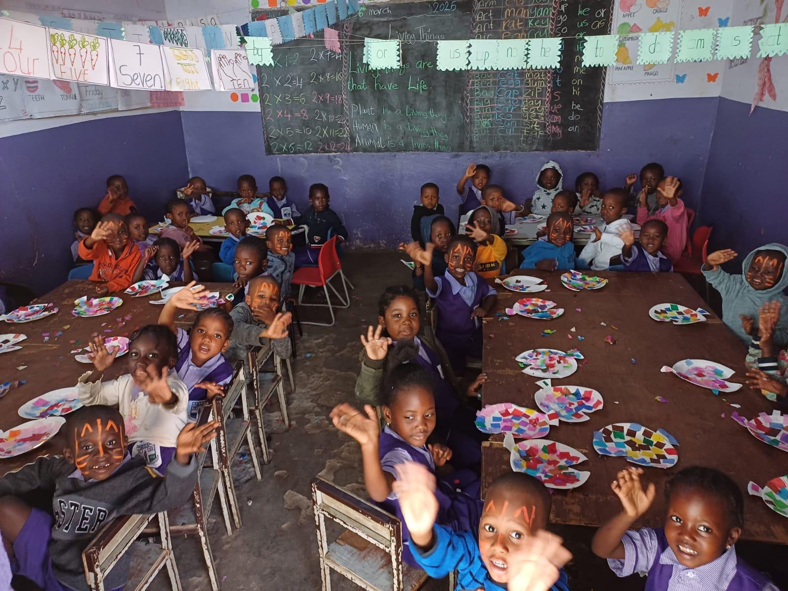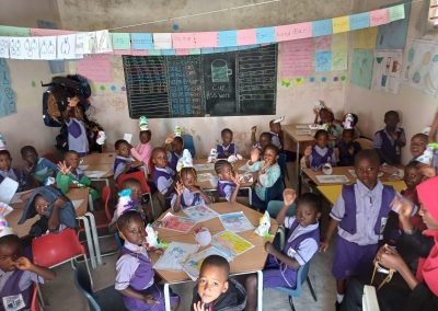 At 9am we left the hotel; we had a squad of 6 artists who returned to Bright Minds to do the very final little bits of art before playing balloons and bubbles with the children, 5 students went to omega nursery and the rest returned to The Spring of Life School.