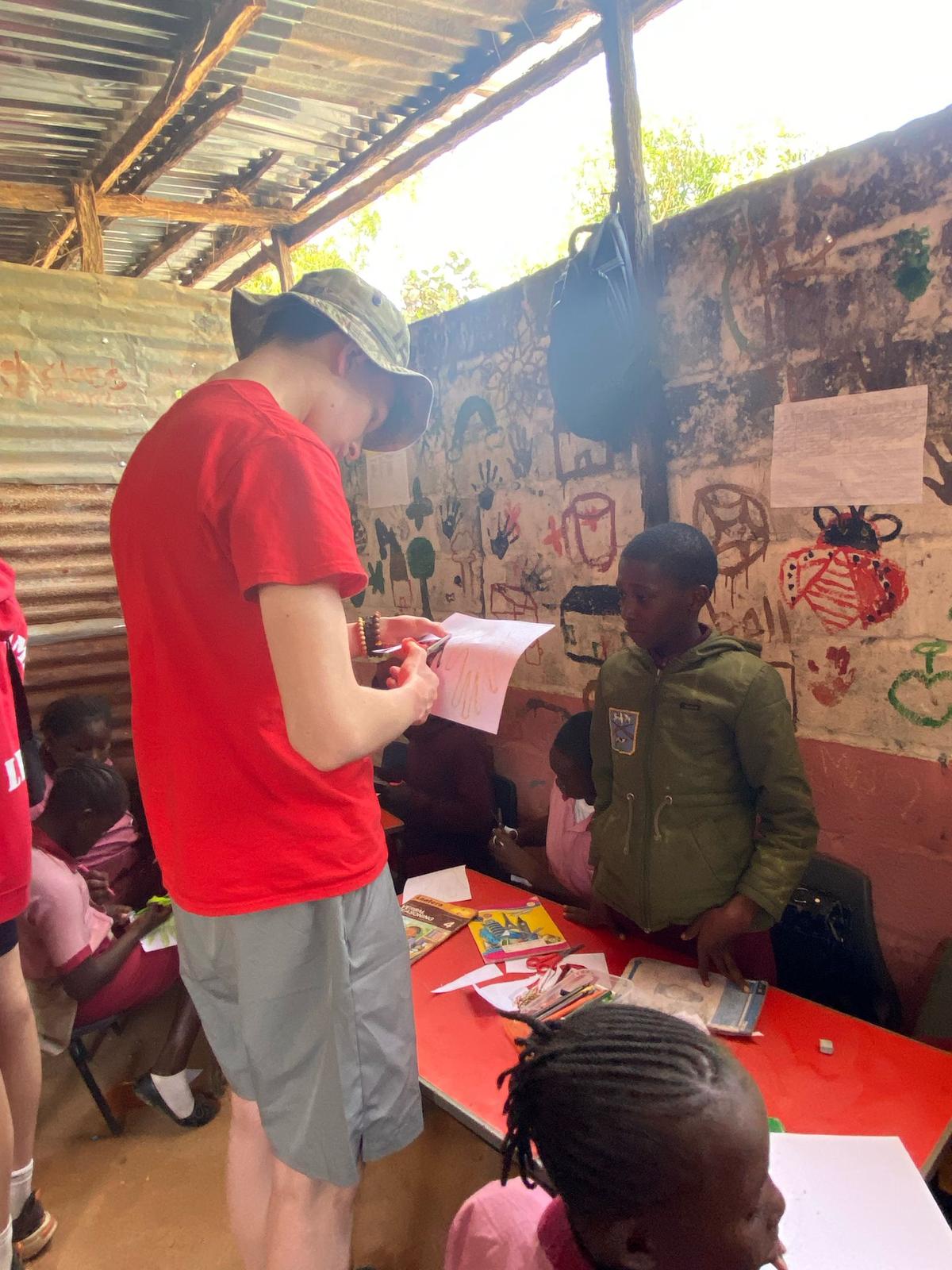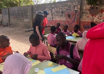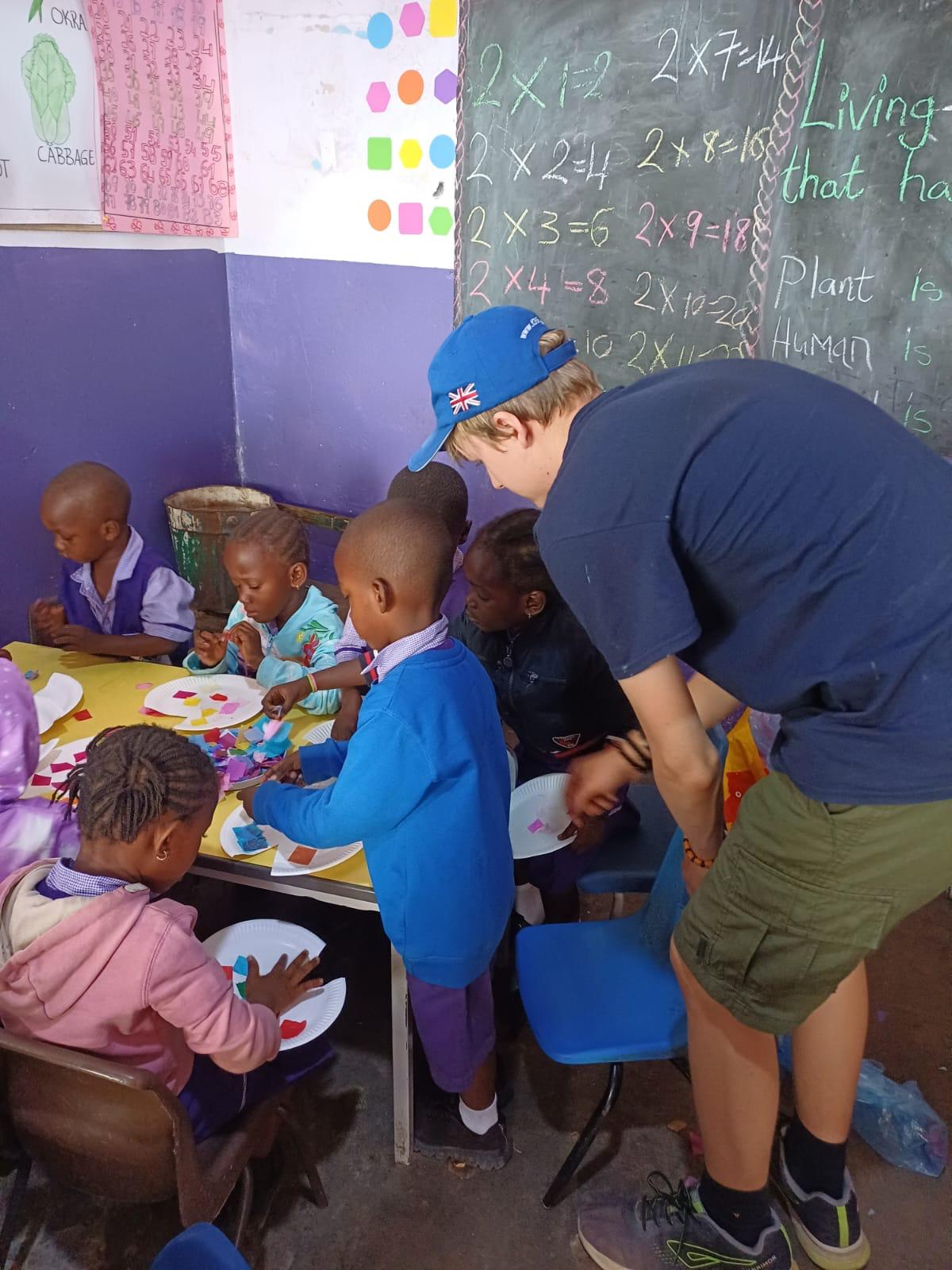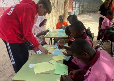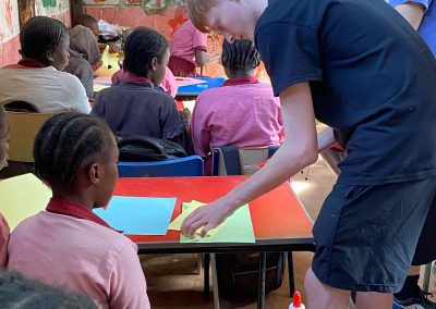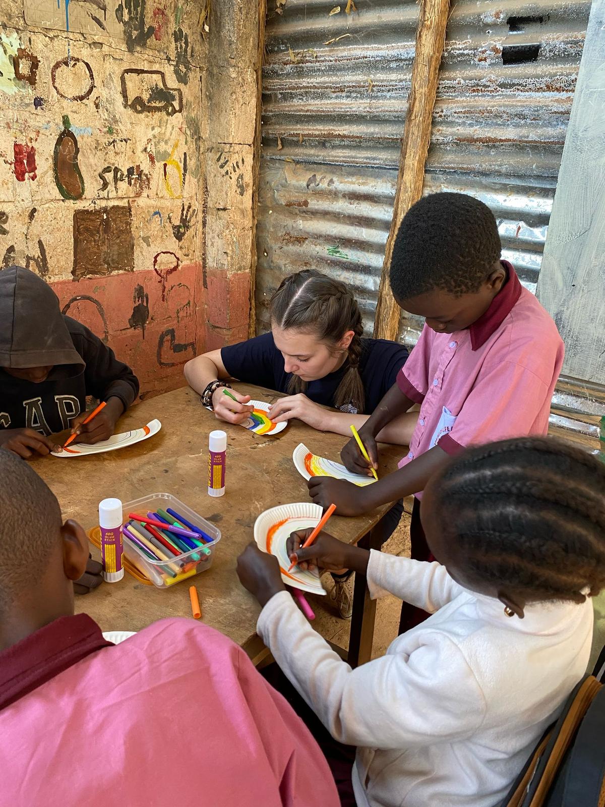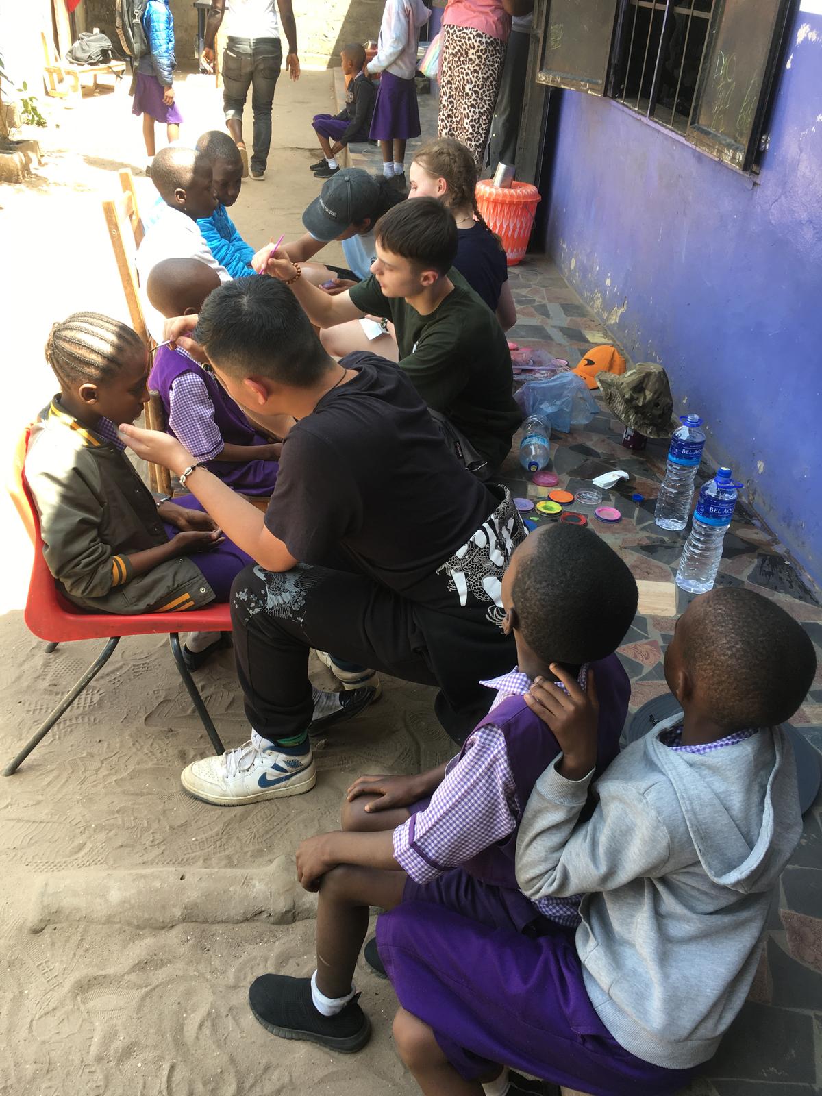 The students engaged in an array of craft activities as they did this afternoon when we returned to omega school. It was lovely to start and end the week working with the children from The Omega school. After the session this afternoon, Famous, the headteacher of Omega took us to the site where the new school is being built. It was a hugely powerful moment for our students to see the construction of a school which is being funded with the money they worked hard to raise.