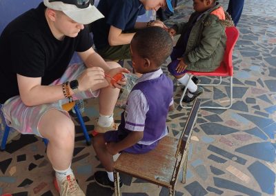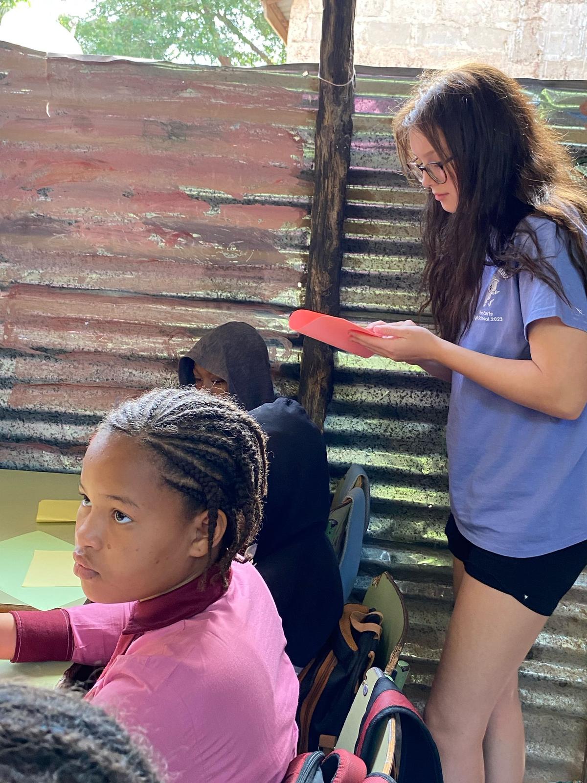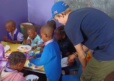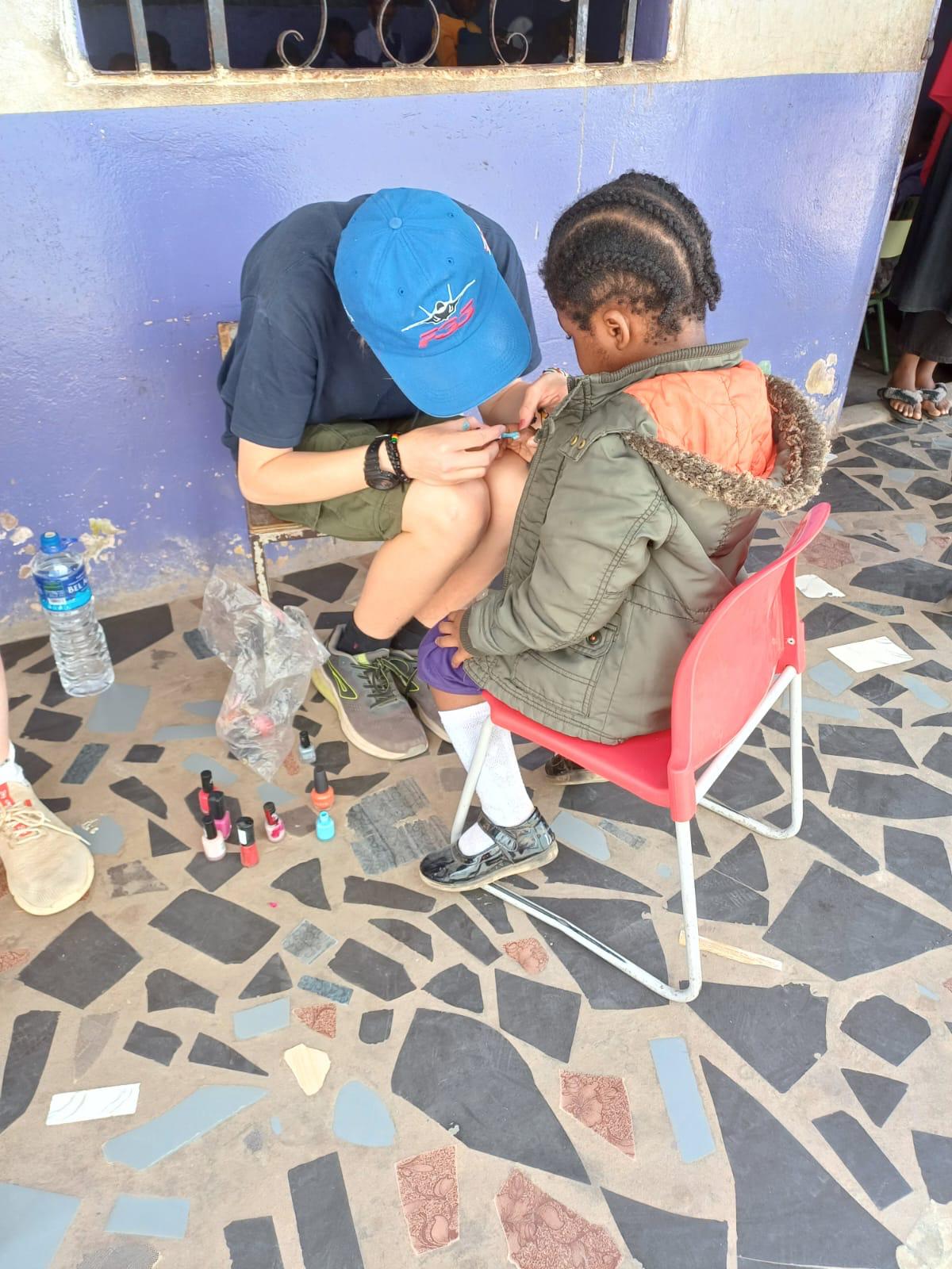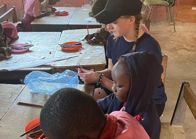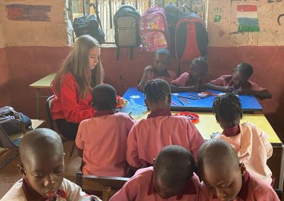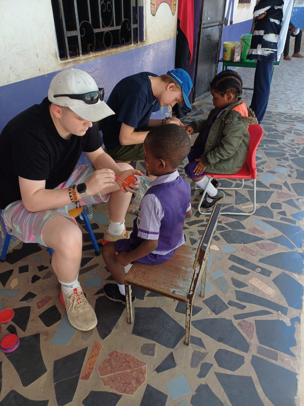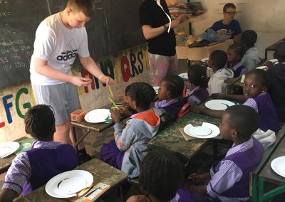 The students engaged in an array of craft activities as they did this afternoon when we returned to omega school. It was lovely to start and end the week working with the children from The Omega school. After the session this afternoon, Famous, the headteacher of Omega took us to the site where the new school is being built. It was a hugely powerful moment for our students to see the construction of a school which is being funded with the money they worked hard to raise.