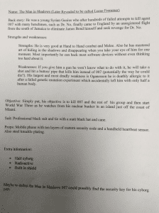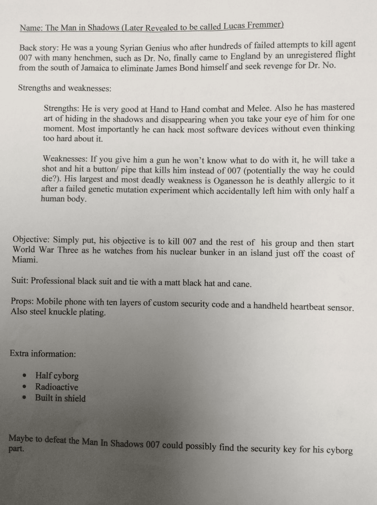 The judges were ‘shaken not stirred’ by the number of excellent entries received but the prize for the most creative and intricate character profile had to go to Dominic. Congratulations Dominic and well done for everyone who entered and achieved a point for their respective House. You can read his winning entry here: