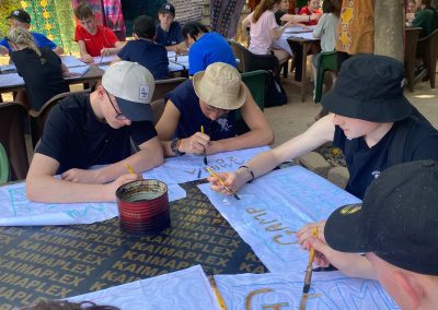 In the afternoon, students tried their hand at Batik art. There were moments of intense concentration as wax was carefully applied and designs began to take shape. The creativity on display was fantastic, and there may be some future Batik artists in the group. Watch this space!