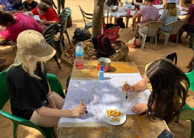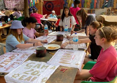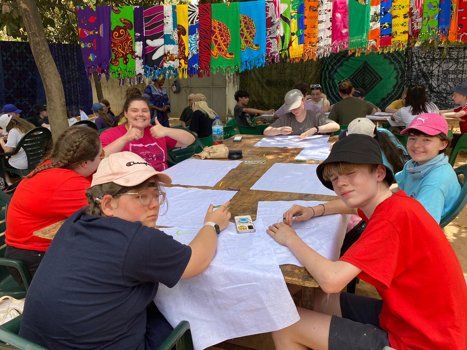 An afternoon of batik, the art of wax painting was in store for us this afternoon. The students completed the process from start to finish and watched their batik pictures being dyed. We look forward to receiving the final result back from Nenah tomorrow afternoon. It has been rather hot again today, so the students are currently enjoying cooling themselves down in the pool.