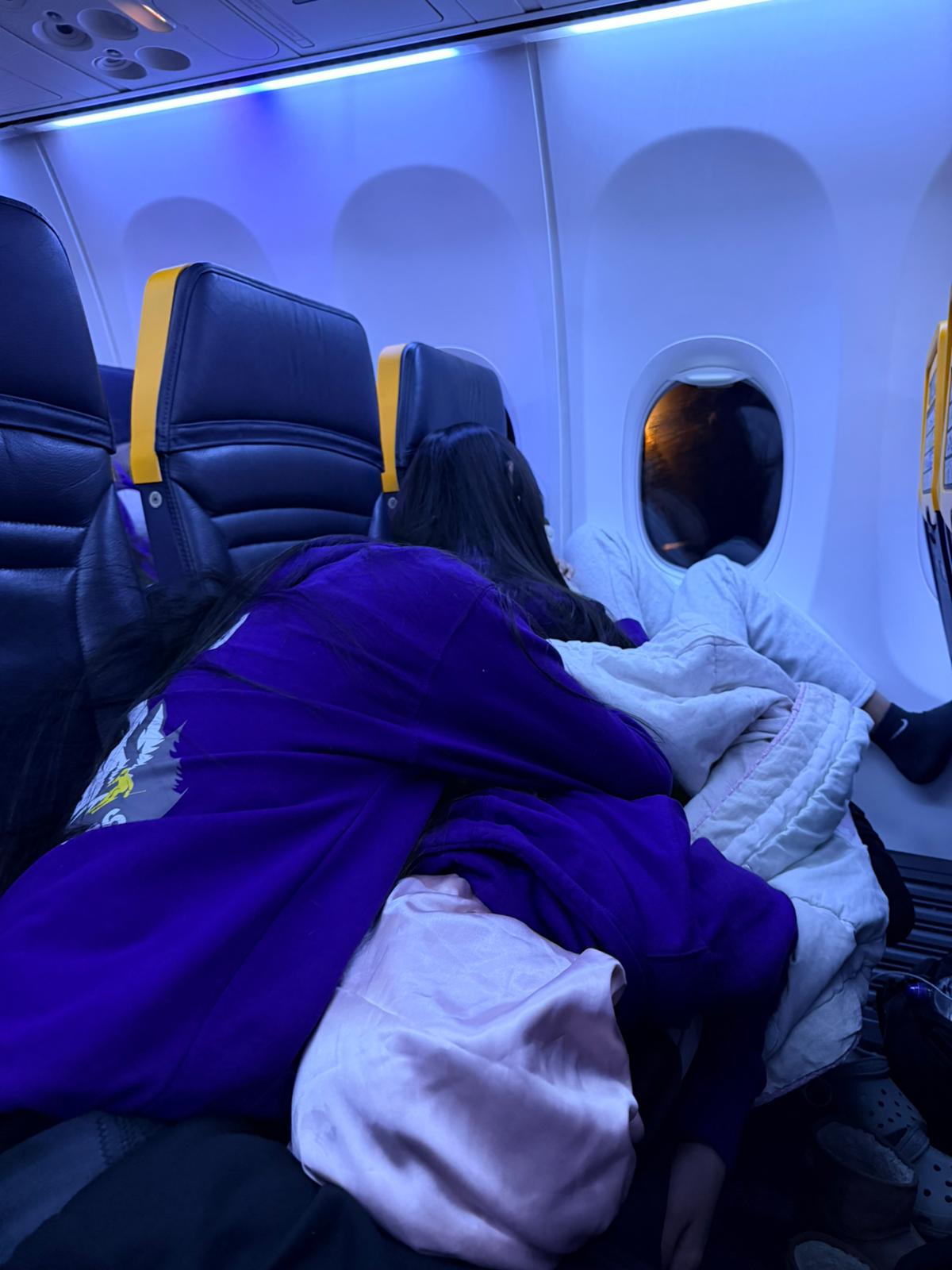 The children, who allegedly “weren’t tired at all,” were: eating KFC at 4am, wearing hoodies as blankets and immediately asleep on the plane except Mason who talked to himself and anyone else awake throughout the flight.